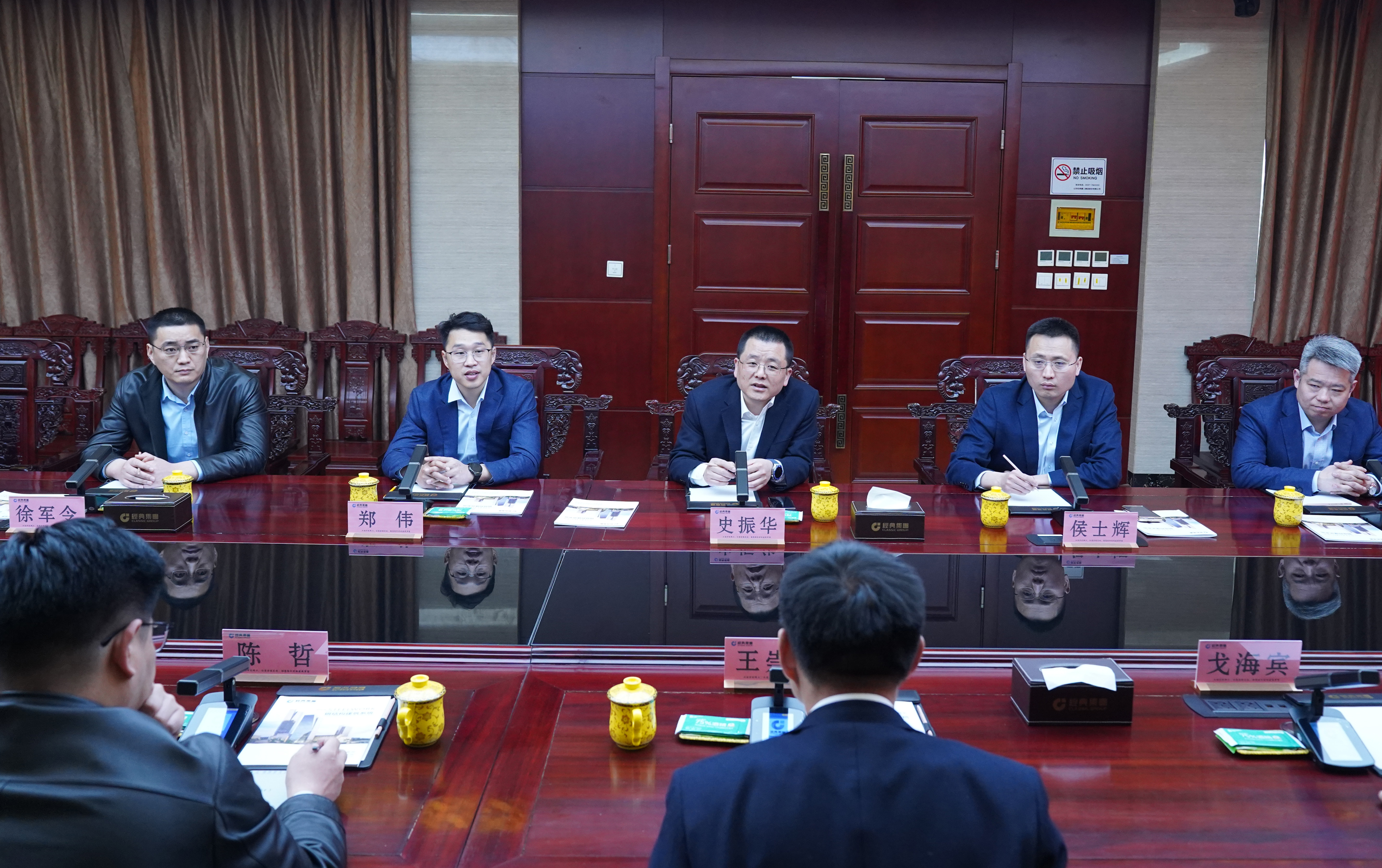 隨后召開合作洽談會。王崇景總經(jīng)理介紹了濟寧能源發(fā)展集團實施“一體兩翼、雙輪驅(qū)動+園區(qū)經(jīng)濟”戰(zhàn)略,加快構(gòu)建“12326”產(chǎn)業(yè)矩陣,發(fā)展新能源、港航物流、高端制造、大宗商品貿(mào)易等業(yè)務有關(guān)情況,并對經(jīng)典集團發(fā)揮產(chǎn)業(yè)鏈優(yōu)勢,創(chuàng)新發(fā)展模式,建設精品工程,打造產(chǎn)業(yè)集群給予了高度評價。